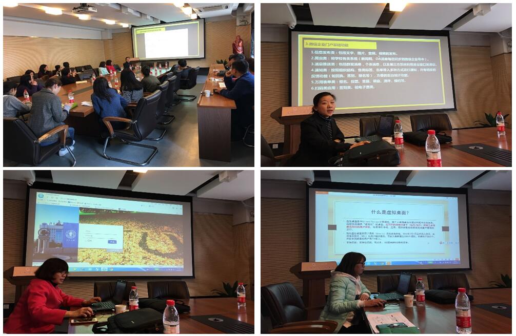 为了解决调研过程中师生反应的对新应用系统不熟悉的问题,信息化办公室与土木建筑工程学院、机械与电子控制工程学院共同组织了专题技术培训,为师生介绍并演示了微信企业号、云盘和虚拟桌面等平台的功能和使用。后续会向全校各个部门推广、宣传、培训校园信息化的各类系统。